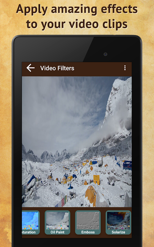 Video Effects & Filters Editor is the powerful video editor which can edit, apply filters and share your videos. You can easily edit your video story, create cool effects with multiple option of amazing filters. You can add more than 20 effects such as sepia, vintage, oil paint, posterize, circle, pixelate, emboss etc. You can trim, extract, flip and rotate video after editing. It is a fun and easy way to edit video and share with apps like Facebook, Whatsapp, twitter, and many more.