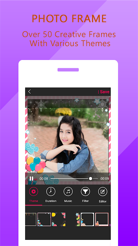 Video Maker Frame is video maker slideshow, photo slideshow maker and movie editing apps in Android Store. With this app, you can easiest way to create, edit your video story from gallery photos. We are trying to build an all-in-one video editor as: Text, Music, Theme, Effects, Frames... Everything you need to make an awesome video.