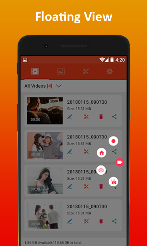 Screen Recorder Free - Video Recorder with Voice app have very smooth and simple working. Open our live video recorder app and you will have very simple layout. You can simply start your recording with the button given in this HD screen recorder app. After that close this video recorder offline and do your other things that you want to record. Screen recorder with audio will capture your screen from background. Whenever you have finished your work then you can stop this video recorder free app. Videos will automatically save in gallery of this screen recorder offline. You can play these videos to check their accuracy in this video recorder with audio app. Share these videos on social media and you can use these videos for promoting your business.