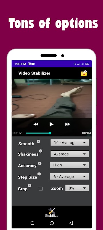 This is an application made remembered usability and productivity so the ui is kept very basic and smooth so the client don't get irritated with it and can utilize it with incredible ease.This is the best video stabilizer app that do stabilize videos in seconds!