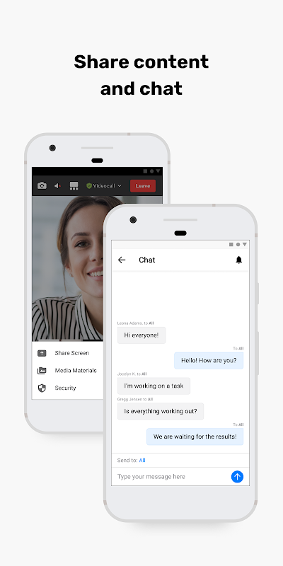 - Group text chat, visible for all participants in conference