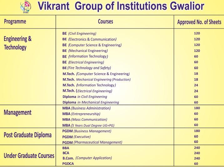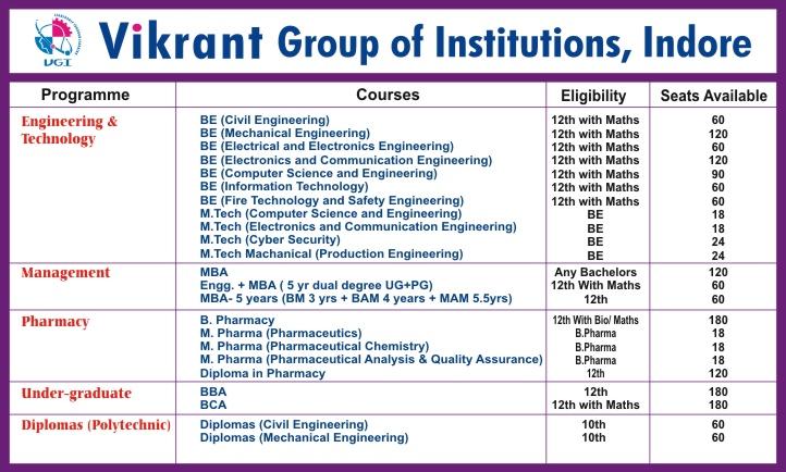 The Vikrant Group of Institutions have embarked on a mission with zeal to imbibe a culture of providing quality education to the learners, thereby leading the learners to the pinnacle of success. To achieve this, abinito we have created a State of Art Infrastructure and indepth resources of through diehard professionals in our team. Our all out endeavour is to groom young future leaders to be complete value driven human beings and competent professionals with a deep passion for our country.