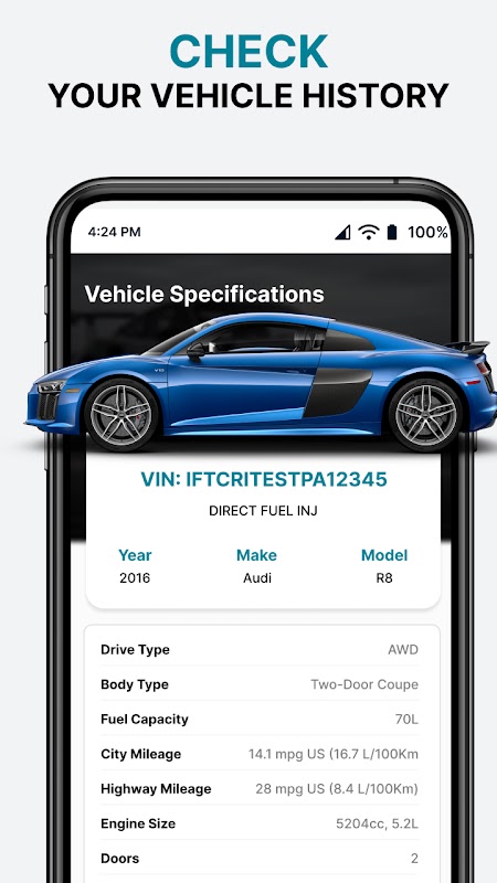 The VIN Scanner & VIN number check Provides you with basic information and taps into databases that store maintenance and service history records associated with the scanned vehicle. Users can easily access the car's repair and maintenance records, empowering them to make informed decisions when purchasing pre-owned vehicles or tracking the maintenance of their own.