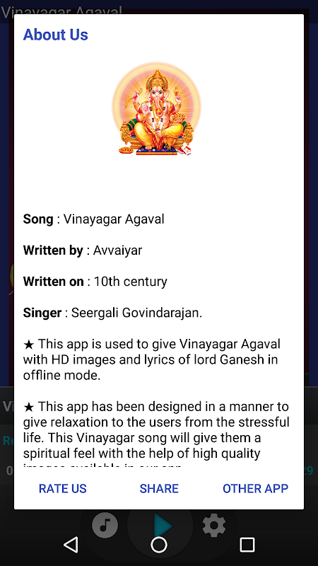 ★ This app is used to give Vinayagar Agaval with HD images and lyrics of lord Ganesh in offline mode.