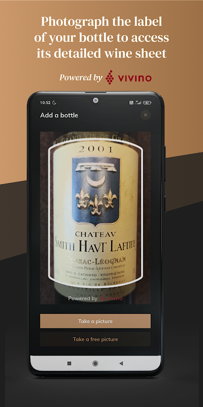 Photograph the label of a wine bottle and access a detailed VIVINO® wine sheet or fill them in manually.