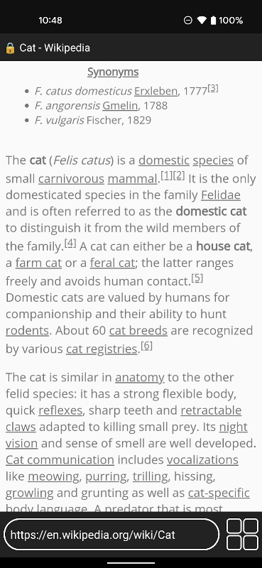 Meet Violoncello, a powerful text-only web browser for Android! This app is great for reading text-heavy webpages such as articles and blog posts, as it removes annoyances such as ads and videos. It's easy to share websites in your main browser to Violoncello, and you can bookmark websites for easy access within the app.