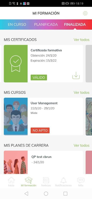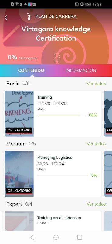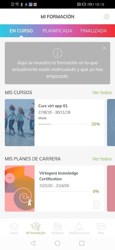 virtagora App incorporates from current training to academic record, including career plans, certificates and the possibility of downloading the associated diplomas. All this organized in an intuitive and accessible way. It also allows you to;