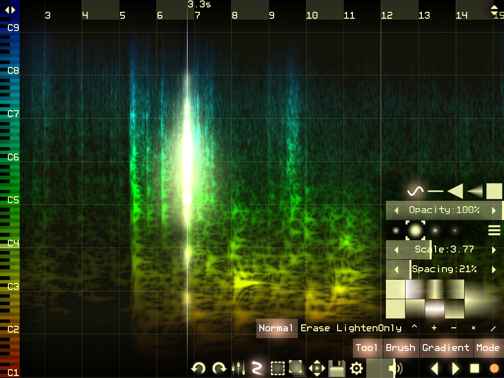 Graphics editor for drawing music and sound. Unique spectral synth