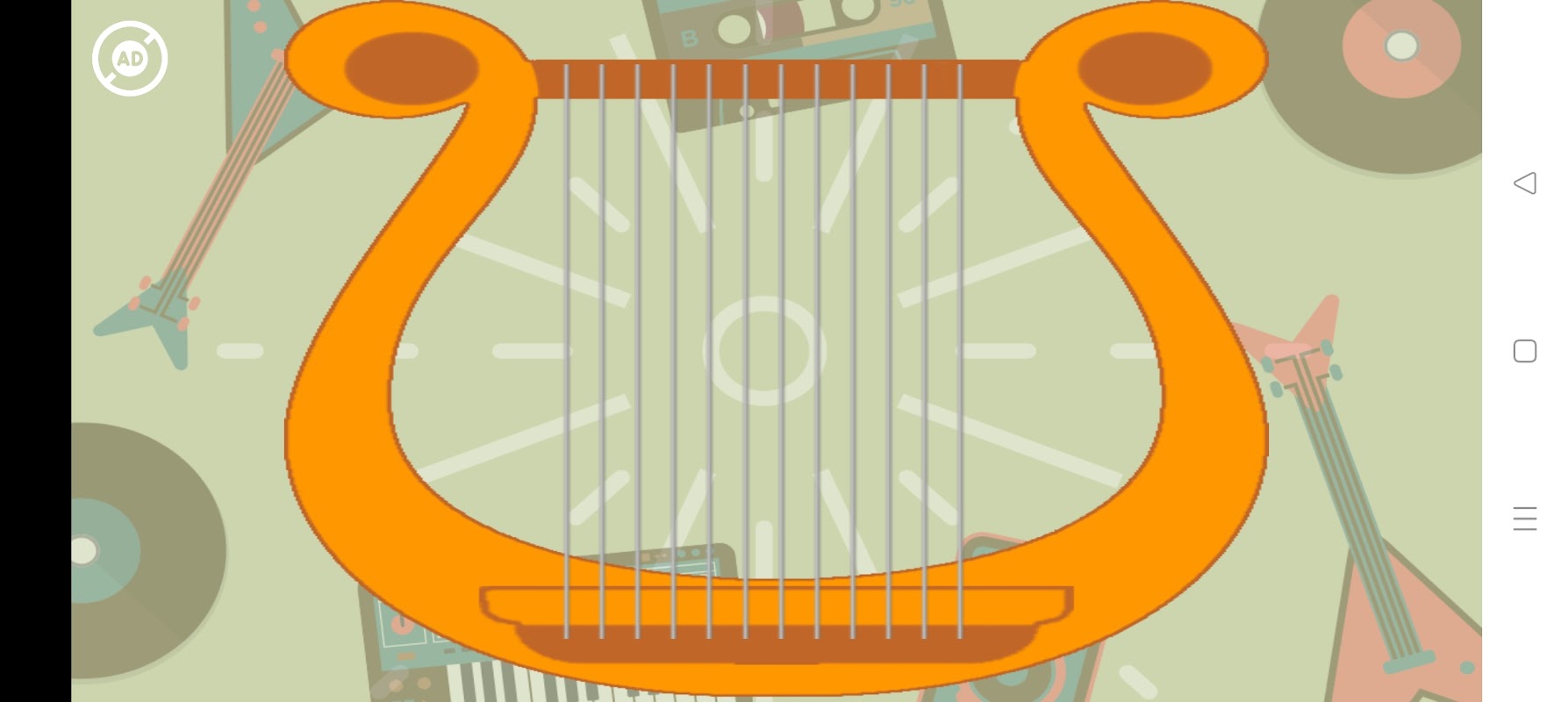 ● The Virtual Harp is an excellent instrument simulator because the attached strings to it as button configuration can be played by just tapping on them.