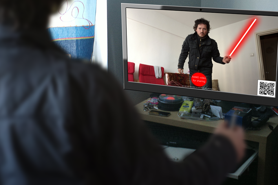 go to http://vp.shpe.ro/lightsaber, run the app in the phone as instructed holding the phone up, start, and then make some moves for the camera and share the video for the world to see