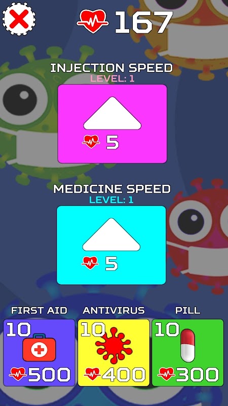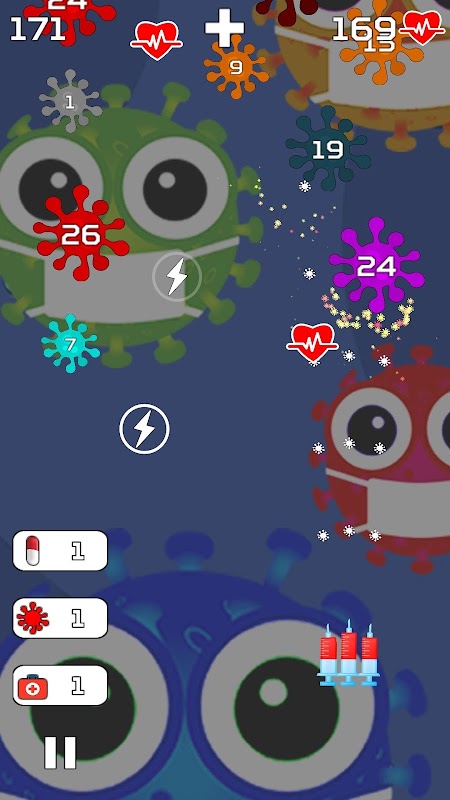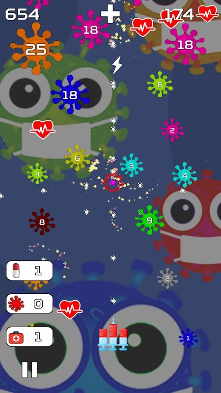 Fire out and destroy as many virus as you can. Upgrade to become stronger and unlock cool boosters. Get additional treatments and make the biggest scores ever.