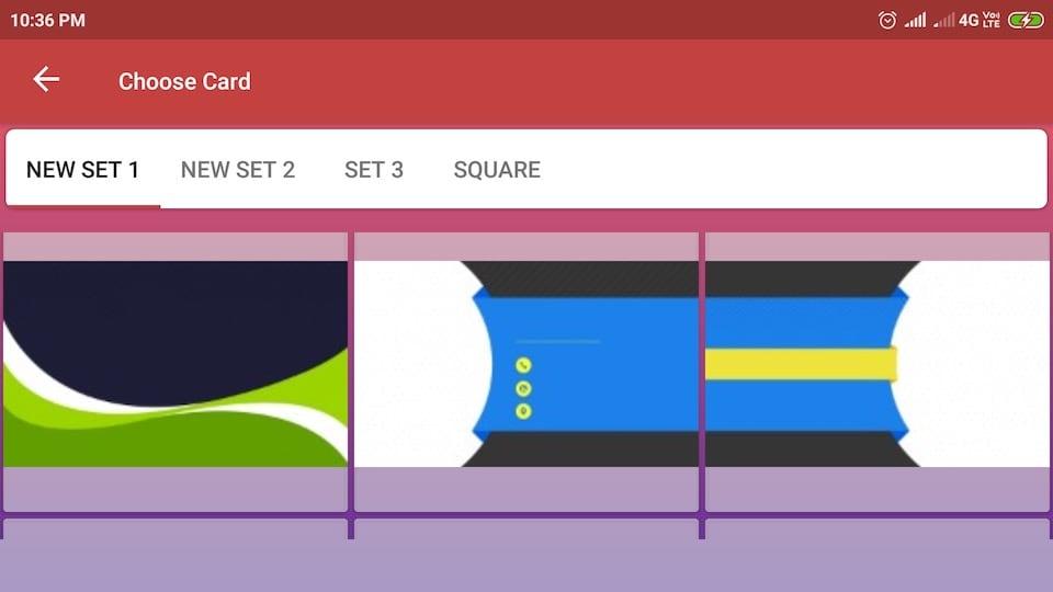 - Choose any card from given template, color as background or pick image of your choice from the gallery.