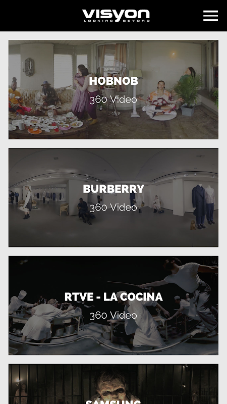 Immersive video player. Experience the amazing videos from Visyon's portfolio.