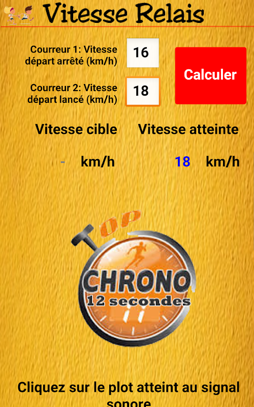 1 time of 12 seconds to calculate the target speed (average speed from standstill of the runner and the starting speed launched relayed)