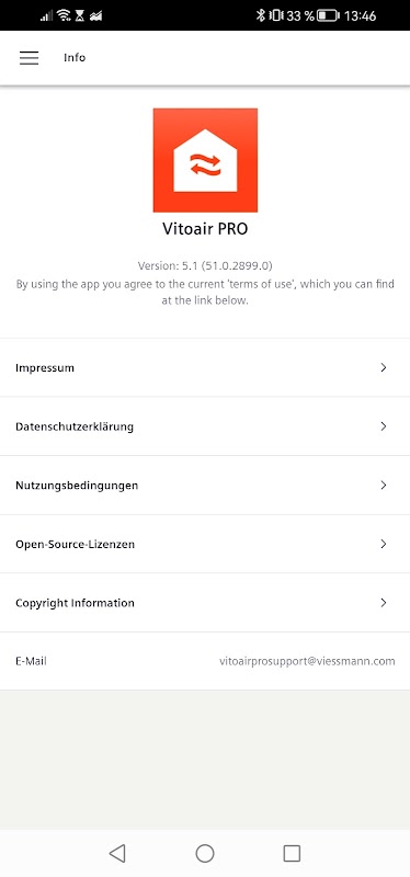 Vitoair PRO is used for commissioning and parameterizing Viessmann Vitoair PRO devices such as the Vitoair FS PRO, VitoAir CS PRO and Vitoair CT PRO series. After commissioning, the Vitoair PRO app can be used to create and read back backups of the system configuration. A commissioning protocol can also be created and exported. It supports the reading of electrical and communication errors.