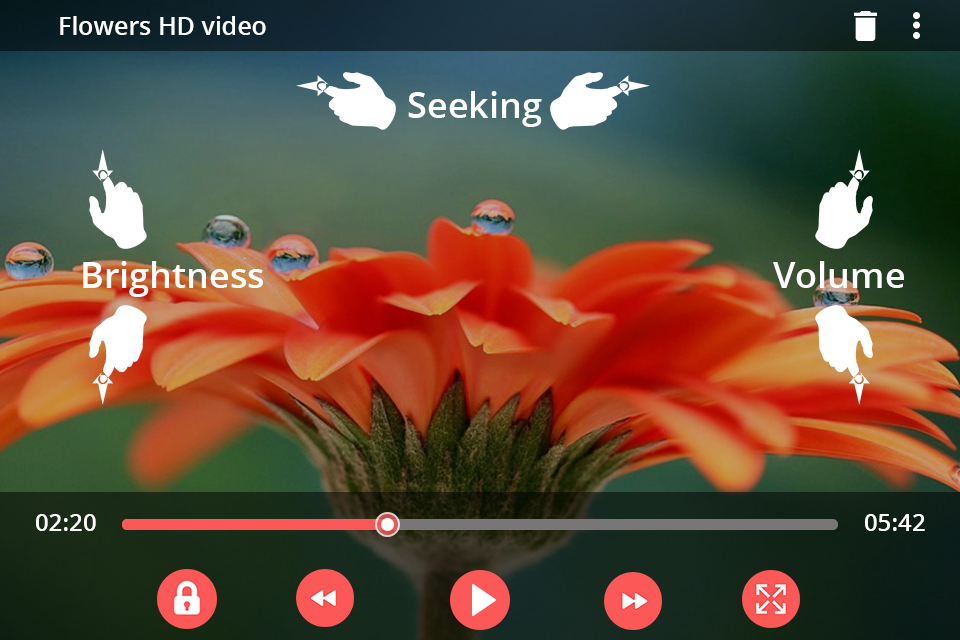 ► Gesture Controls to Increase / Decrees Volume, Seek video Backward/ Forward.
