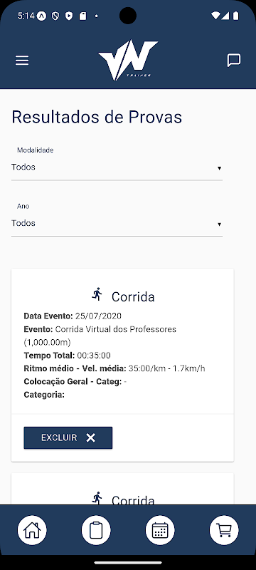 Application for Assessoria Esportiva VN Trainer athletes that has the following features: