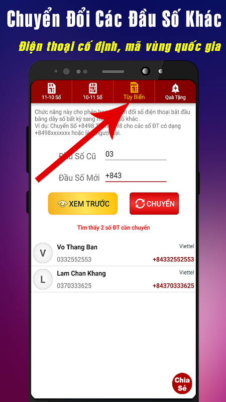 Ứng dụng chuyển đổi tất cả số điện thoại đầu 11 số sang đầu 10 số và ngược lại