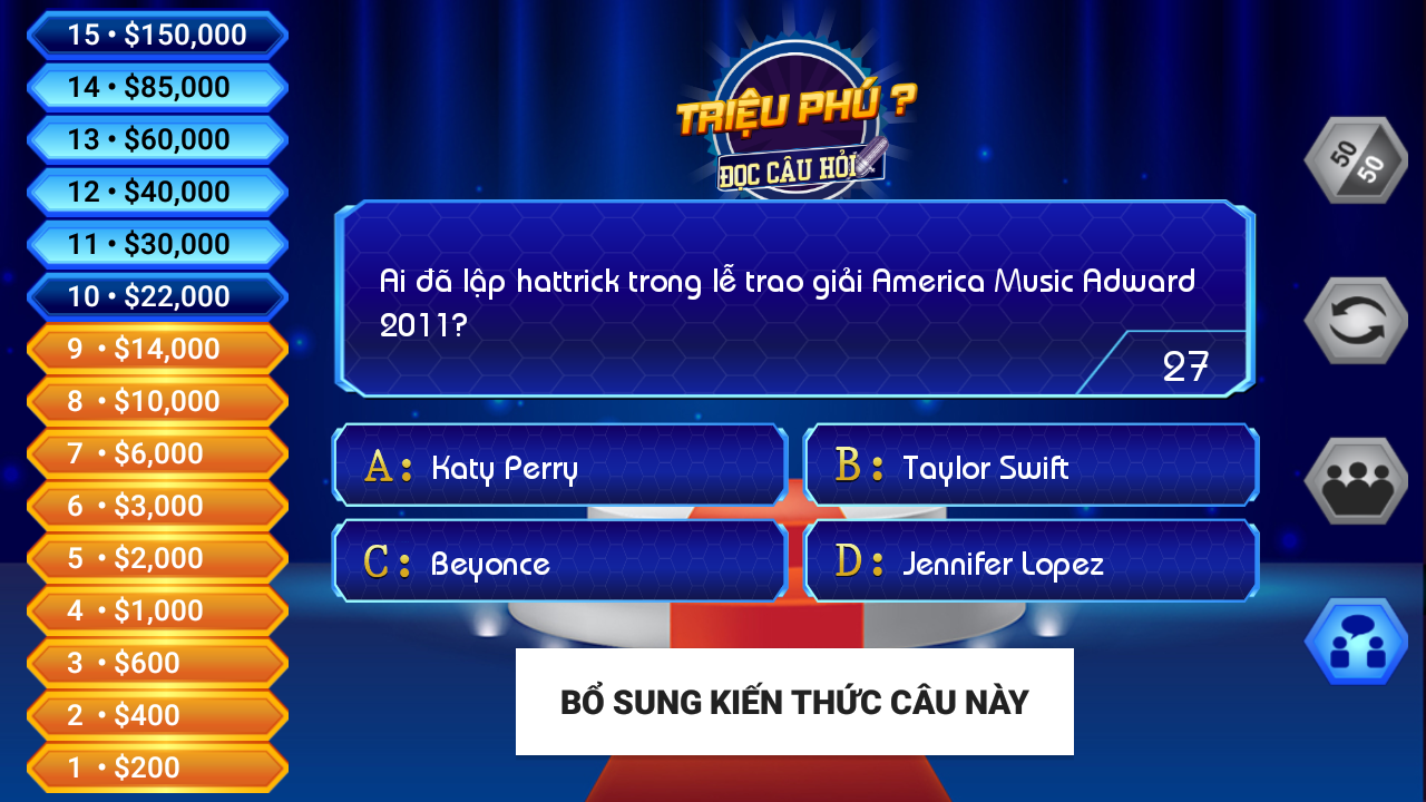 ✔ Mô phỏng giống thực tế 99%, người chơi sẽ có cảm giác như được ngồi trên chiếc ghế nóng của chương trình Ai Là Triệu Phú