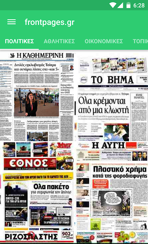 Το frontpages.gr φέρνει στο κινητό σας τα πρωτοσέλιδα του ελληνικού τύπου κάθε μέρα από το πρωί.