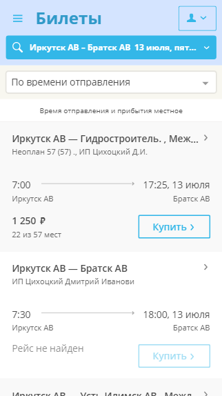 Trong ứng dụng, bạn có thể mua vé xe buýt đến sự điều hành của khu vực Irkutsk và các vùng lân cận.