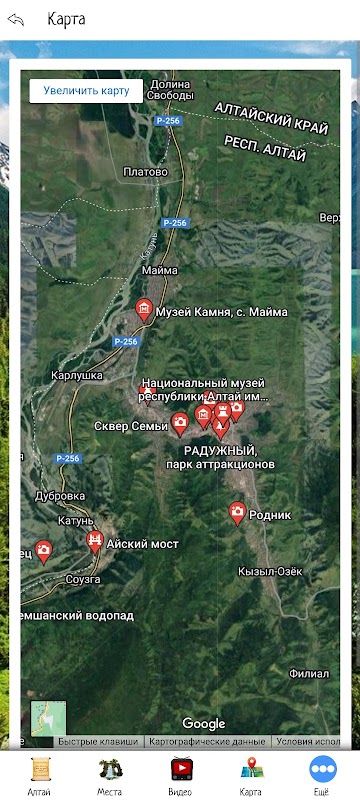 Trong ứng dụng, bạn có thể làm quen lần đầu với Lãnh thổ Altai, chọn địa điểm cho chuyến đi bằng cách xem các điểm tham quan và đánh giá video. Ứng dụng này cũng chứa thông tin về các công ty du lịch và khách sạn cung cấp dịch vụ của họ ở Gorno-Altaisk.