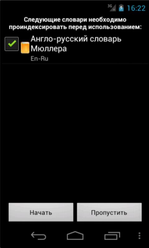 Англо-русский словарь Мюллера для GoldenDict. Если GoldenDict еще не был установлен, то он предложит установить его с Google Play.