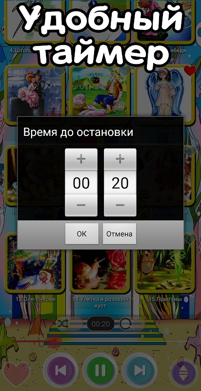 Добавлен таймер, теперь удобно слушать аудиосказки на ночь.