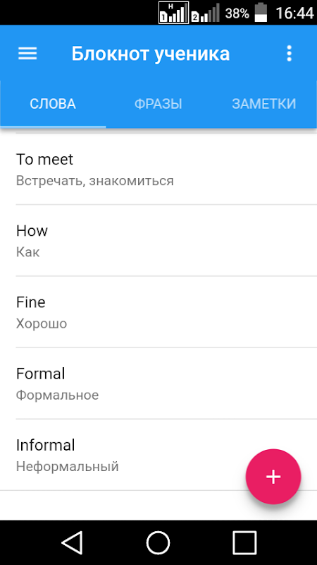 Приложение является простым блокнотом, позволяющим делать записи в процессе изучения иностранного языка(английский)