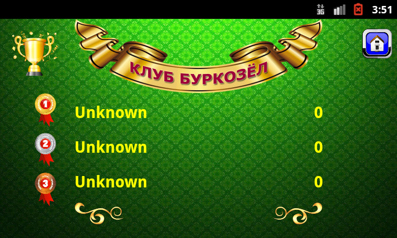 Азартная карточная игра "Бура" для двоих игроков. Можно играть как Буру, так и в Буркозла. Сыграв 40 конов при хорошем счёте игрок попадает как в локальную таблицу чемпионов, так и в мировую. Можно выбрать одну из трех любимых советских колод: Атласную, Майя или Славянскую. Требуется размер экрана 800x480 или лучший. Поддерживаемые языки: English + Русский.