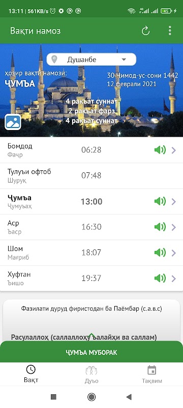 Вакти намоз Тоҷикистон 4.5.1