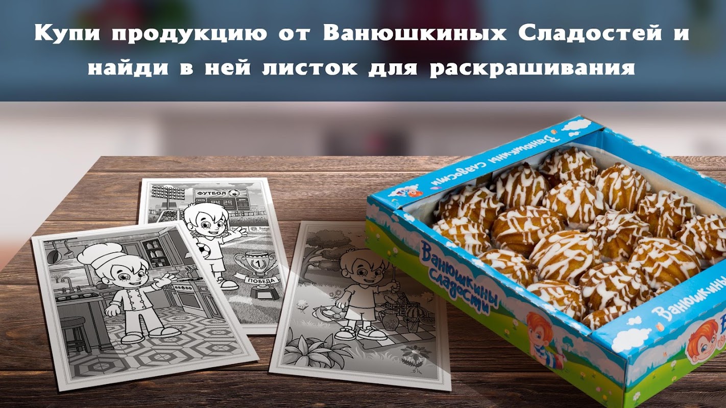 1. Купи продукцию "Ванюшкины сладости" и найди в ней рисунок для раскрашивания