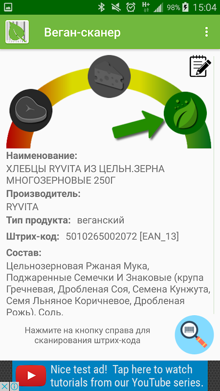 Веган-сканер штрих-кодов - мобильное приложение, позволяющее легче ориентироваться в веганских и вегетарианских продуктах 🌱