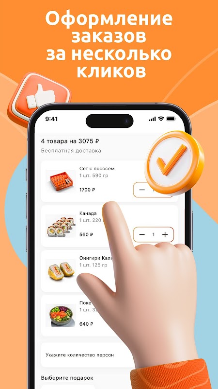 Áp dụng chuỗi quán sushi "Hương vị và cá hồi" với thời gian giao hàng từ 45 phút. Chúng tôi đảm bảo độ tươi của sản phẩm và khi đăng ký, bạn sẽ nhận được 150 điểm thưởng. Đặt món bánh mì yêu thích của bạn chỉ trong vài cú nhấp chuột và thưởng thức ẩm thực Nhật Bản đích thực! 24 điểm nhận hàng và giao hàng đến hầu hết các khu vực của Moscow và khu vực Moscow.