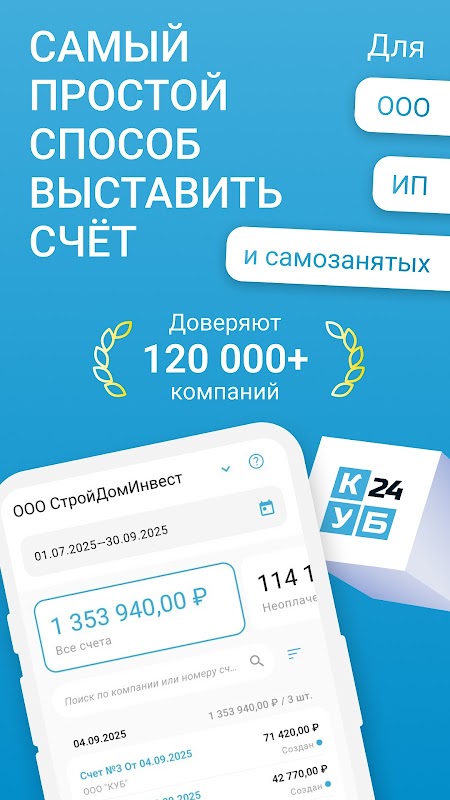 KUB24 là một ứng dụng kinh doanh dành cho doanh nhân, lý tưởng cho các công ty TNHH, doanh nhân cá nhân và người tự kinh doanh. Ứng dụng cho phép bạn nhanh chóng xuất hóa đơn và biên lai để thanh toán, cũng như duy trì hồ sơ tài chính và kế toán khi đang di chuyển. Ứng dụng hoạt động như một công cụ kế toán trực tuyến trên thiết bị di động và một tài khoản cá nhân để quản lý tài khoản. Ngoài ra, bạn có thể nhanh chóng xem các tài liệu quan trọng (báo cáo dịch vụ, phiếu gửi hàng, hóa đơn, UPD), theo dõi thanh toán, kiểm soát các khoản phải thu, theo dõi kho hàng và quản lý cơ sở khách hàng của mình.