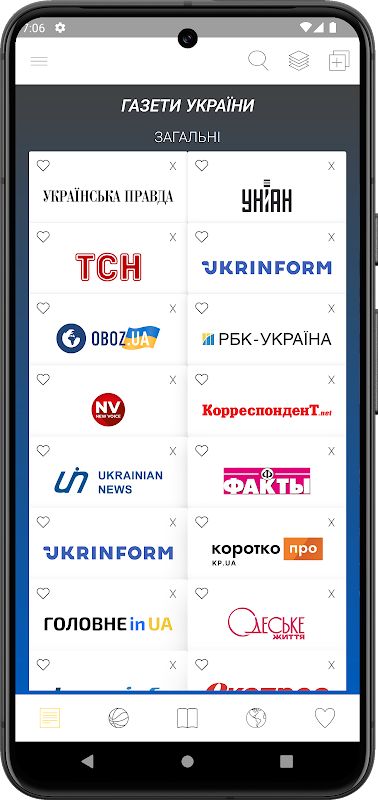 Báo chí được nhóm lại để điều hướng dễ dàng hơn. Do đó, bạn có thể đọc "Pravda" và sau đó chuyển sang các tờ báo khác cùng thể loại, chẳng hạn như "UNIAN" hoặc "TSN". Điều này cho phép bạn có được một vài suy nghĩ về các sự kiện hiện tại ở Ukraine.