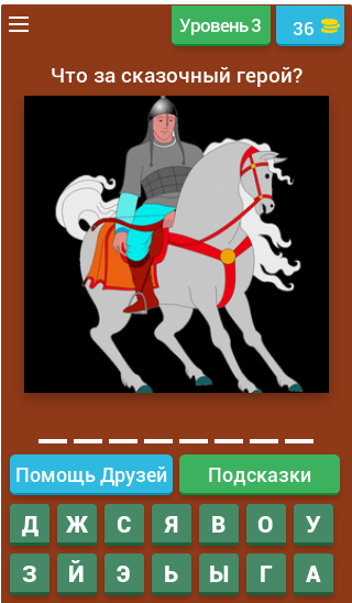 Узнаёте персонаж с первого раза? Составляйте его имя, получайте монеты и переходите на следующий уровень.