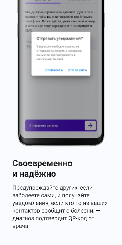 Nếu bạn có kết quả dương tính với COVID-19, hãy cho những người dùng khác biết rằng bạn đang bị bệnh. Họ sẽ không biết tin nhắn đến từ ai hoặc anh ta ở đâu. Ứng dụng không truyền dữ liệu về điện thoại, chủ sở hữu và vị trí của nó. Chỉ có thông tin về việc tiếp xúc với COVID-19 vào một ngày cụ thể trong 14 ngày qua.