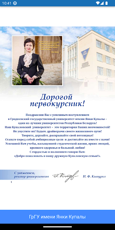 Ứng dụng có thông tin hữu ích cho sinh viên năm nhất YKSUG họ. Yanka Kupala