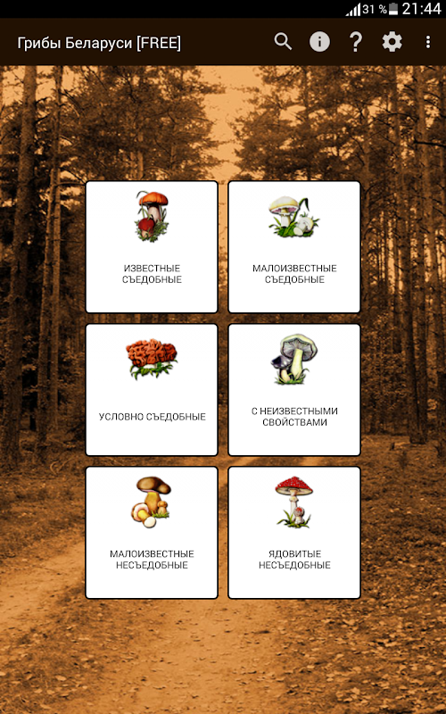 Nấm Belarus - một tuyệt vời Android tham chiếu cho bảng chọn nấm này.