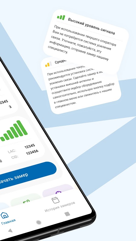 👍 Có sẵn chế độ “nâng cao” chuyên nghiệp, trong đó có sẵn thông tin mở rộng về các thông số liên lạc. Thuật toán thuận tiện để lấy số đo và phân tích chúng.👍 Trình bày kết quả đo bằng đồ họa trực quan.