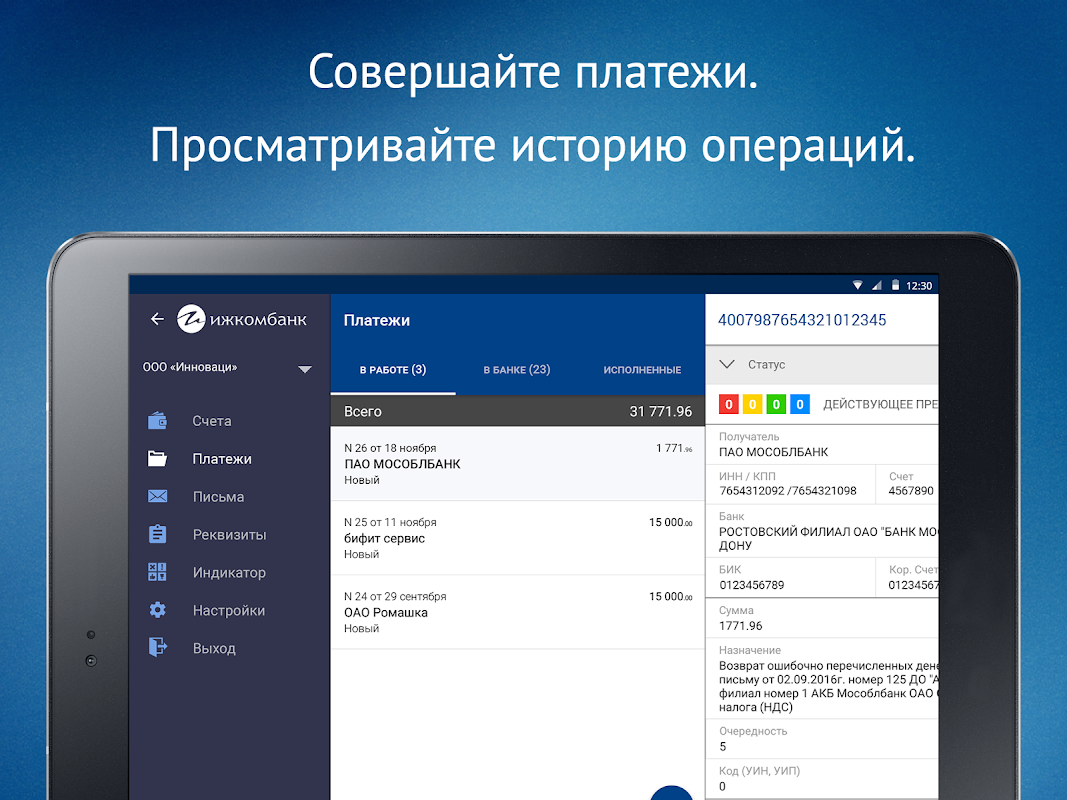 Ứng dụng di động "Databank Business" dành cho các pháp nhân và doanh nhân sẽ cho phép bạn quản lý từ xa các tài khoản của tổ chức mình và nhận được thông tin kịp thời về trạng thái của họ.