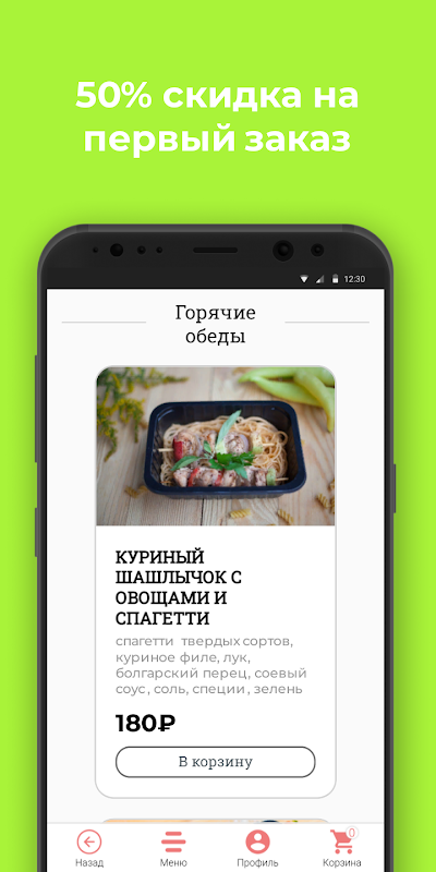 Скидка 50% при первом заказе через приложение!
