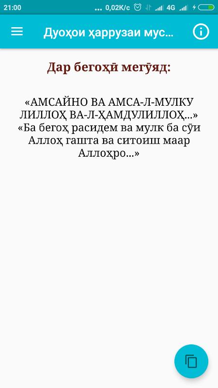 Дуоҳои ҳаррузаи мусалмон бо забони тоҷикӣ.