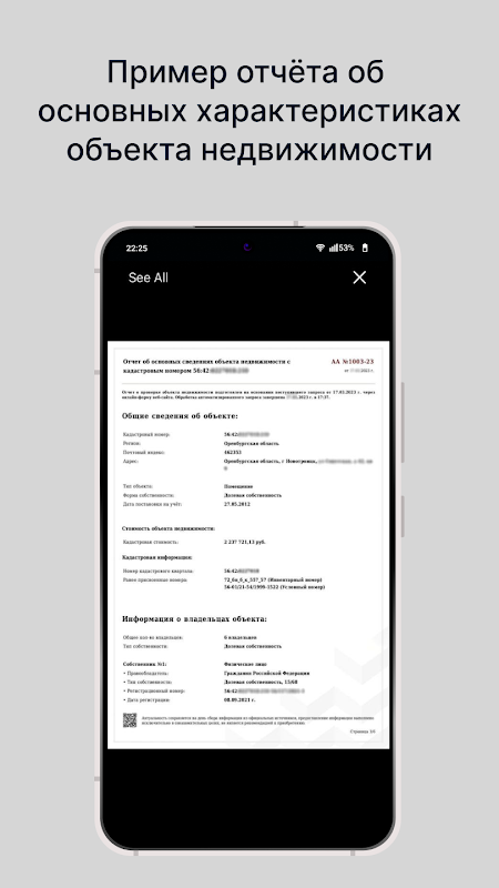 Dịch vụ này không thuộc về Rosreestr và không bán lại thông tin từ USRN. Đoạn trích từ USRN Rosreestr là tài liệu chính phản ánh thông tin về quyền sở hữu. Tuy nhiên, một tuyên bố USRN trực tuyến không phải là một báo cáo. Báo cáo có sẵn để đặt hàng trong ứng dụng được tổng hợp trên cơ sở dữ liệu của nó và dữ liệu từ các cơ sở dữ liệu chính thức mở khác, chẳng hạn như FSSP, FNP, Bộ Nội vụ, v.v. Nó chỉ dành cho mục đích thông tin và không có hiệu lực pháp lý .