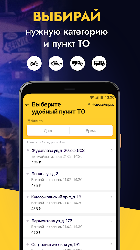 Nhờ ứng dụng của chúng tôi, bạn không còn phải xếp hàng hay gọi điện đến điểm kiểm tra kỹ thuật. Bây giờ bạn quyết định địa điểm và thời điểm tốt nhất để vượt qua cuộc kiểm tra.