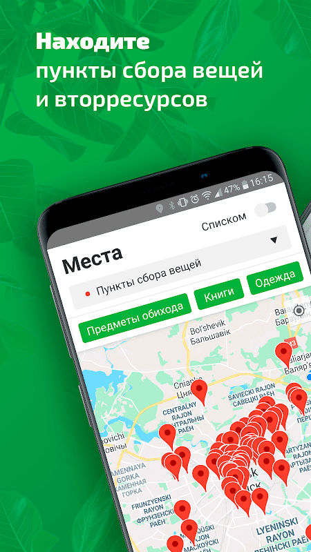 Thẻ xanh là ứng dụng đối tác chính thức của Trung tâm Giải pháp môi trường, Movements Cuộc sống mới đổi lấy nắp đậy, cốc của tôi, xin vui lòng và bản đồ rác thải của Minsk, Minsk.