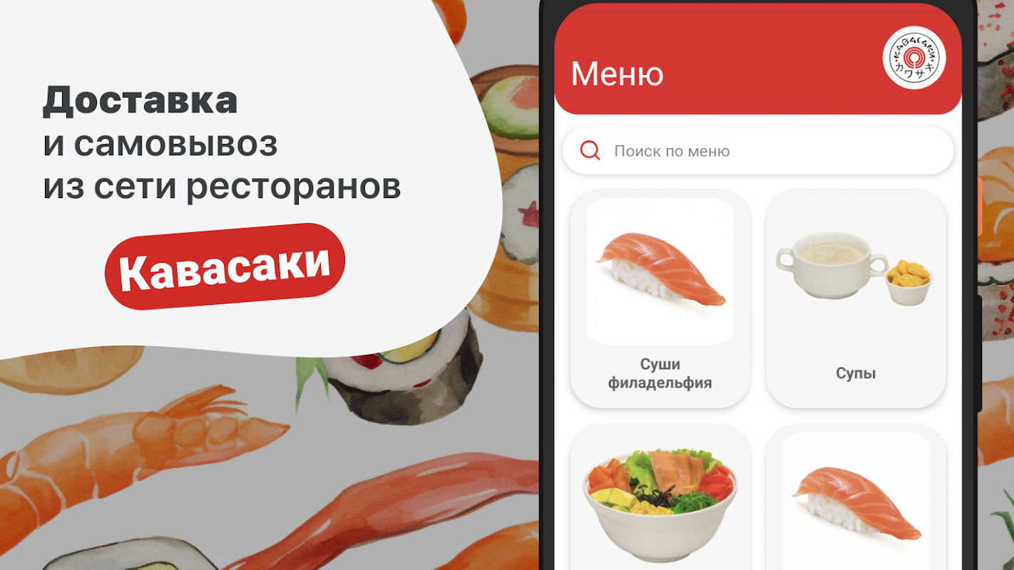 ứng dụng di động Kawasaki nhà hàng sẽ cho phép bạn nhanh chóng và dễ dàng sắp xếp giao hàng hoặc xe bán tải của ẩm thực Nhật Bản và châu Âu tại Kaluga.