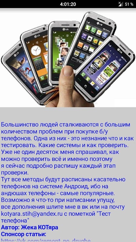 Nó sẽ giúp bạn làm quen với tất cả sự khôn khéo của việc mua b / một chiếc điện thoại, làm thế nào để kiểm tra về việc thực hiện và làm thế nào để kiểm tra điện thoại.