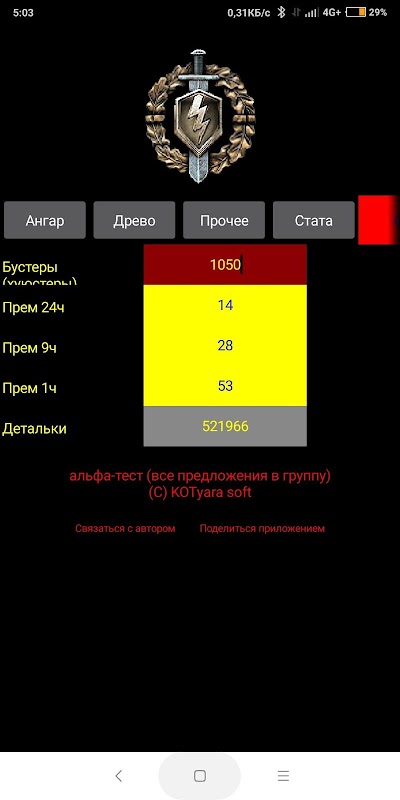 Ứng dụng này không nên được xem xét tính giá chính xác, bởi vì nó chỉ xem xét giá về sự sẵn có của thiết bị và dr.parametrov trong hangar. Trận chung kết thẻ giá cho người bán luôn :-)